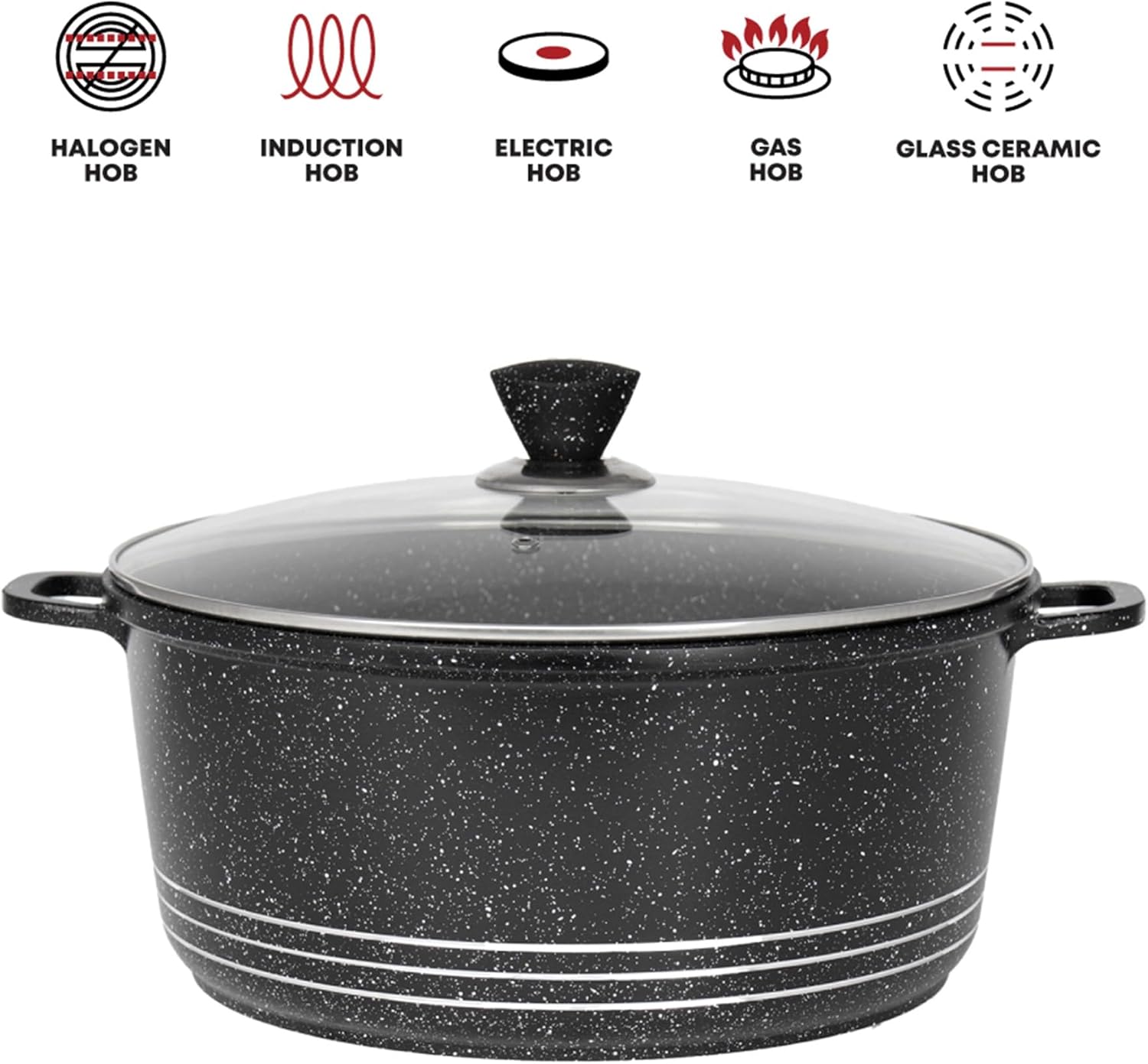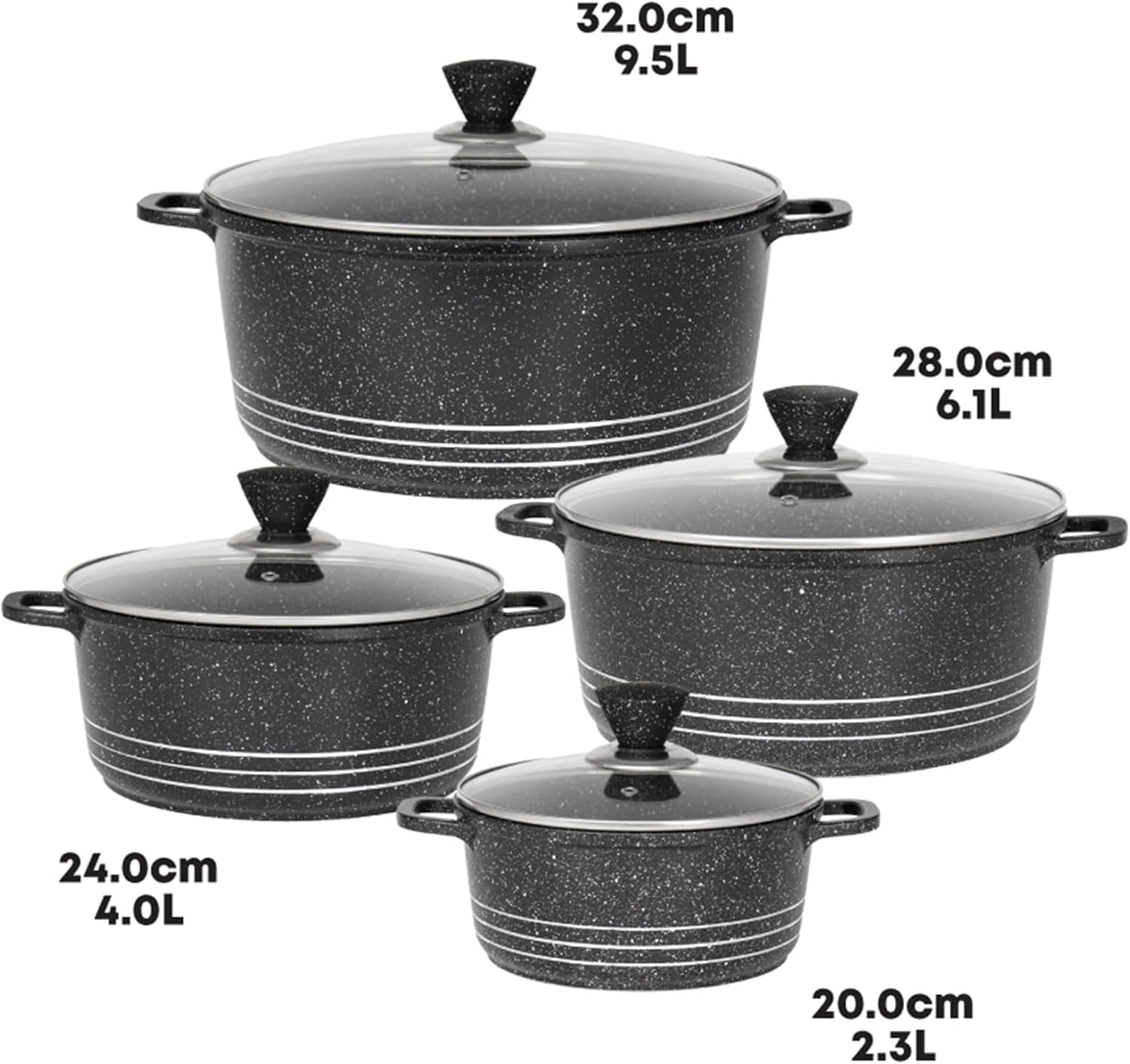 4 Versatile Sizes – Includes 20cm, 24cm, 28cm & 32cm pots for all types of cooking.
