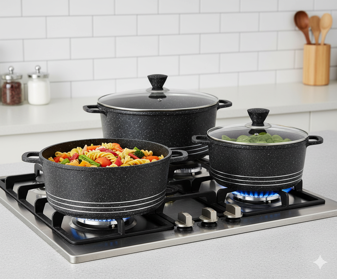 From slow-cooked stews to quick weeknight dinners, this casserole pot set delivers professional results and long-lasting performance.
