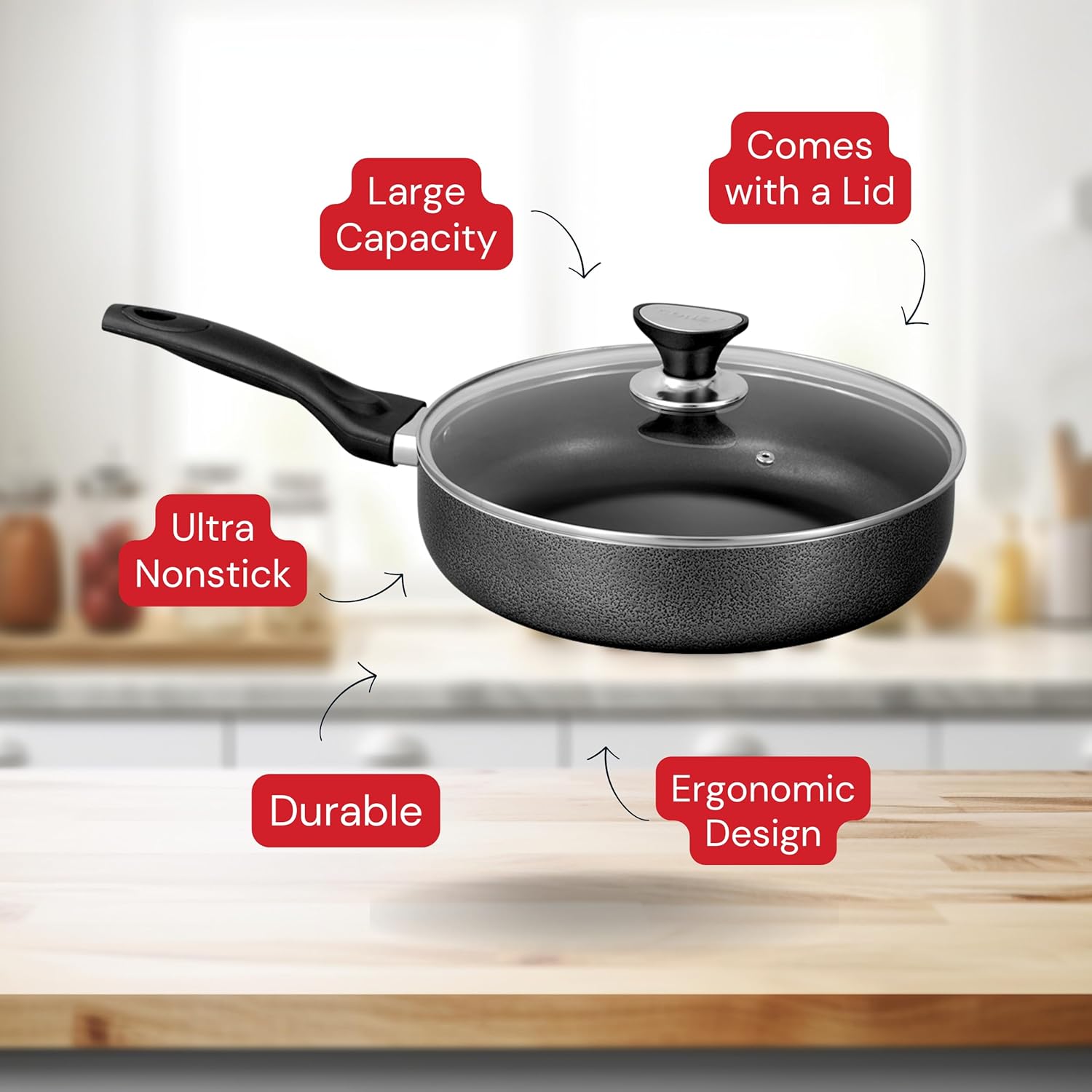 Tempered Glass Lid – Traps heat, retains moisture, and lets you monitor your cooking without lifting the lid.